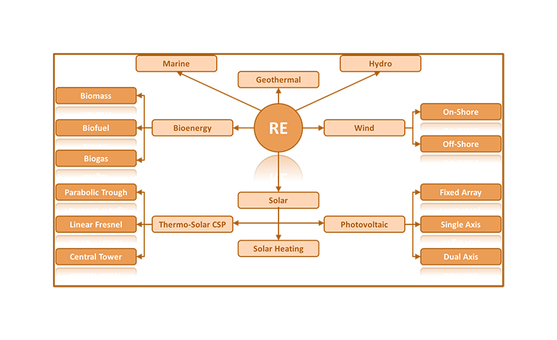 • Technologies: Cylindrical Parabolic Collector (PT), Central Tower Receiver (CR), and Linear Fresnel Reflector (LFR)